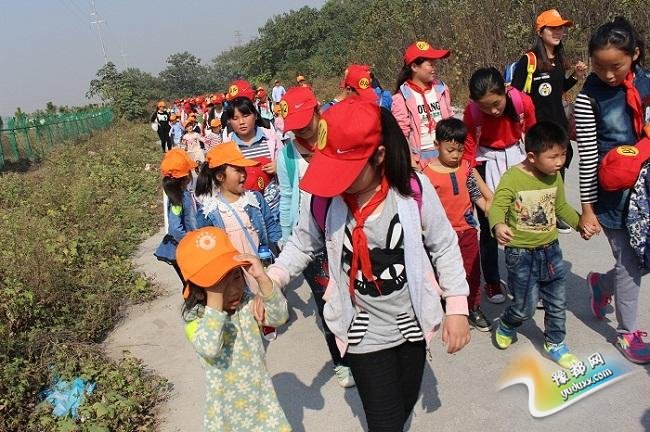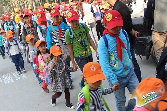 为相应须水中心幼儿园举行的“大手拉小手 远足赏秋色”远足主题活动,培养学生的爱心和责任意识,锻炼学生吃苦耐劳的精神,给学生亲近大自然的机会,须水镇第八小学积极组织五六年级的学生参与此次手拉手活动。